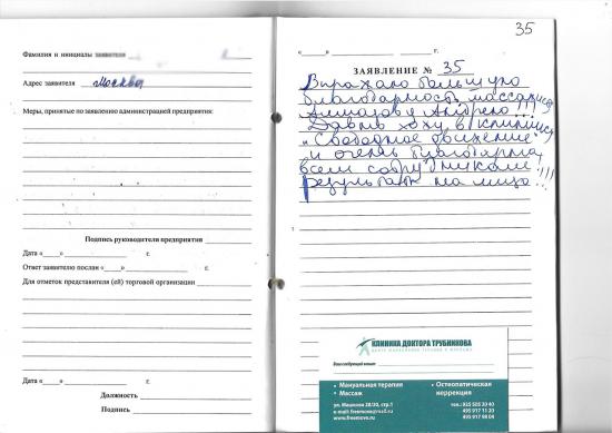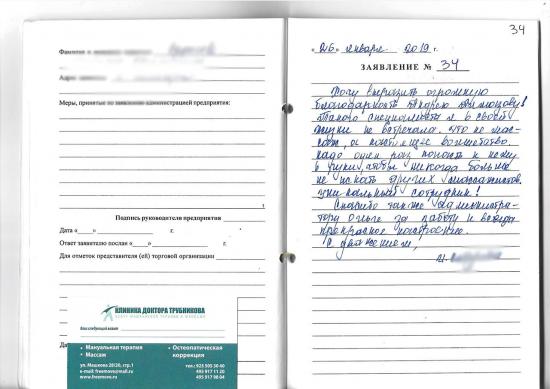 Ниже представлены отзывы наших пациентов, оставленные через специальную форму на сайте или записанные вручную в журнале отзывов и предложений клиники (представлены в виде отсканированных оригиналов).