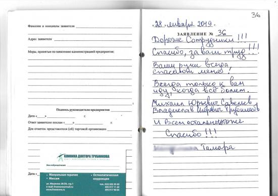 Дорогие сотрудники!!! Спасибо, за выш труд!!! Ваши руки всегда спасают меня! Всегда только к вам иду, когда все болит. Михаил Юрьевич Савельев, Владислав Игоревич Трубников и всем остальным тоже спасибо!!!